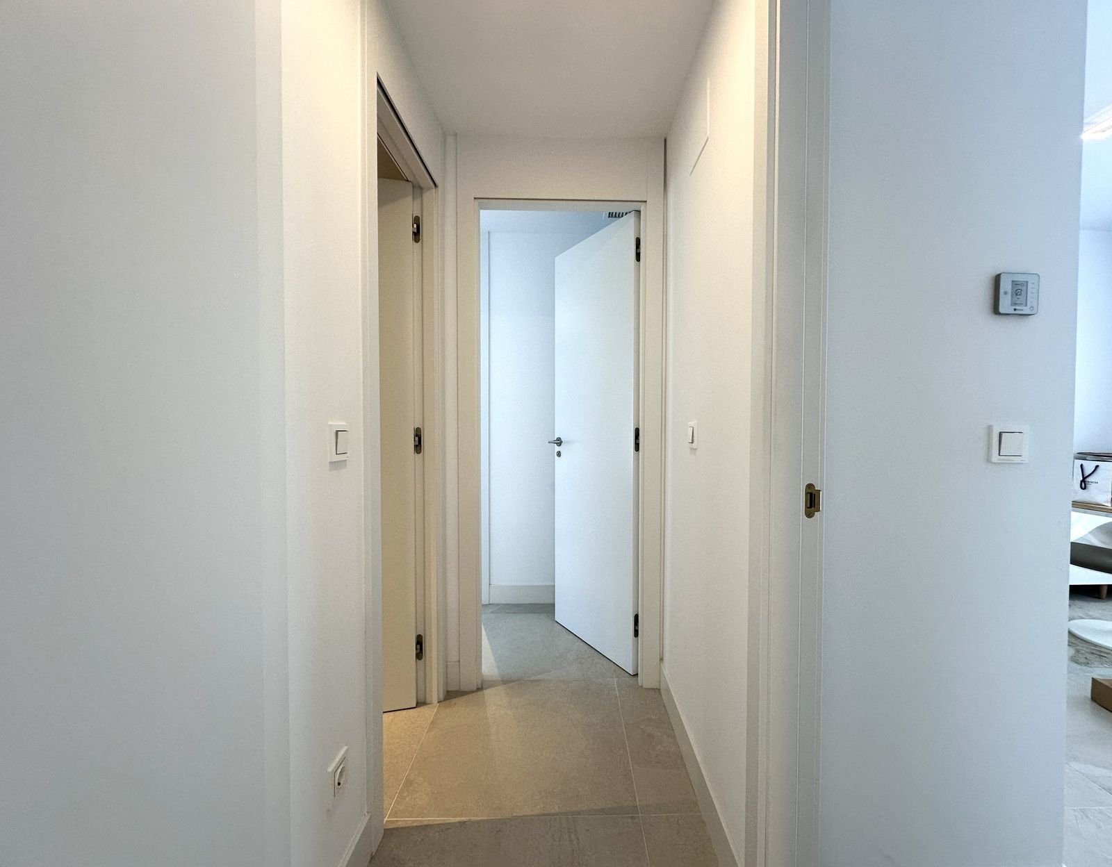 Inside, distributed into 2 bedrooms, 2 bathrooms, and a terrace, upon opening the door, we find a beautiful, very bright entrance hall that first leads us to a fully equipped and highly functional open-plan kitchen connected to the large living room, which stands out for its minimalism and the brightness provided by the large windows leading to the apartment's first terrace. This terrace, equipped with outdoor tables and chairs, a Balinese armchair, and a chill-out area, is ideal for spending a lot of time outdoors and enjoying summer nights. Returning to the entrance, we also head towards the apartment's beautiful master bedroom with an en-suite bathroom and direct access to the outdoor terrace, as well as the second bedroom and the general bathroom of the house.