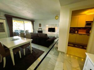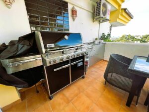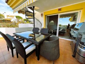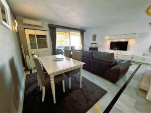 The location is unbeatable, just a short walk from the beach, restaurants, shops, gyms, and paddle courts. The gated community also features a communal swimming pool and beautifully maintained gardens. The apartment includes a private parking space and a storage room.
