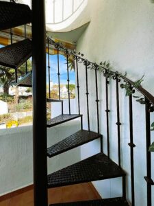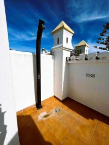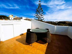 There are two private terraces: one shared by the bedrooms and another connected to the living room, with a staircase leading to a sunny solarium, ideal for relaxing and enjoying the stunning panoramic sea views.