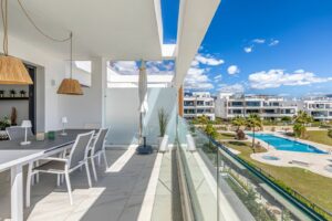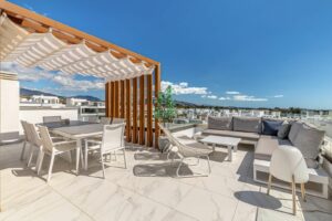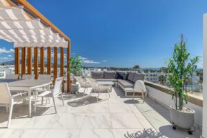 This modern and stylish apartment in Cancelada, perfectly located between Marbella and Estepona, offers a fantastic rooftop terrace and prime location! Built in 2020, the property includes two garage spaces and a storage room. Restaurants, shops, supermarkets, and the beach are all within walking distance.