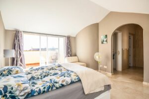 This exquisite duplex penthouse offers a perfect blend of luxury and convenience, featuring a well-appointed lower floor that includes a modern kitchen with a utility area, a comfortable bedroom with a stylish bathroom and a spacious living/dining area and the expansive uncovered terrace provides stunning views of the communal gardens and swimming pool. The upper level boasts an additional bedroom with an en-suite bathroom and a small terrace, enhancing the living experience. With new furniture and kitchen appliances, this property is move-in ready. Located in a prime area within walking distance to shops, bars, restaurants, and the beach, it is situated in a gated community that offers 24-hour security. Additionally there is an underground private parking space and a storage room for added convenience.