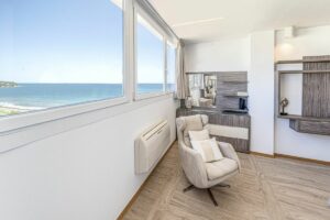 Fantastic penthouse situated on the beachfront in the town of Estepona, within easy walking distance to all the amenities of the town. This beautiful apartment was xompletely renovated in a contemporary style by the present owner. Offering two bedrooms both with ensuite bathrooms, a living room with panoramic sea views and a fully fitted kitchen, the renovation has been done to a high standard. The jewel of this property is the large roof terrace with a Jacuzzi that offers simply breathtaking views of the sea where Gibraltar and the African coast are easily visible. It should be noted that there is no communal swimming pool or parking in the complex. A host of caés, restaurants and beach bars are all easily accessible from this location which makes it a perfect holiday home.