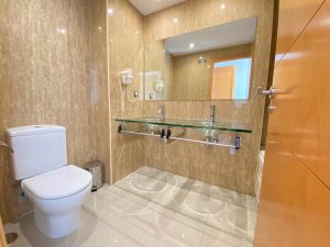 The master bedroom with ensuite bathroom has hydromassage bath and double glass washbasin, second bedroom and second bathroom with hydromassage walking shower.
