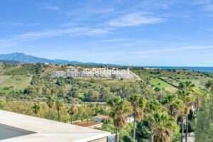 The penthouse features an open-plan kitchen and living area, seamlessly flowing onto a large private roof solarium with both open and covered spaces—perfect for relaxing, entertaining, and enjoying the surroundings. From here, take in golf, country, and pool views that create a peaceful and luxurious atmosphere.