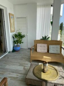 The property offers a beautiful 15 m² terrace with Lumon glass curtains, which can be fully opened or closed with ease, allowing year-round enjoyment while maintaining natural light and an open-air feeling.