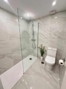 The duplex layout provides excellent privacy and balance, with two generously sized bedrooms, two contemporary bathrooms, and an additional ground floor WC, all finished to a high standard that reflects the home’s modern luxury feel.