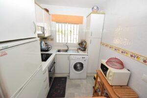 SECOND LINE BEACH. This is a lovely 2 bedroom penthouse apartment with fantastic pool, garden and sea views from the enclosed terrace and solarium. Situated in a great location very close to the beach and it is only a short, flat walk into La Cala centre and many restaurants, beach bars and shops. A good sized living room with dining area adjacent to the open kitchen, it is ideal for a holiday home or rentals. La Siesta is a well maintained, gated, secure complex with underground parking and lifts.