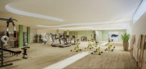 The complex comprises of a indoor and outdoor pool, gym and sauna.