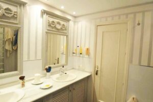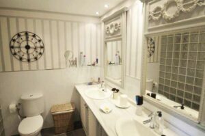 Upstairs, you’ll find two bright bedrooms, both with private terraces. The master bedroom enjoys partial sea views, and the stylishly renovated bathroom features high-end finishes and a modern design, offering both comfort and elegance.