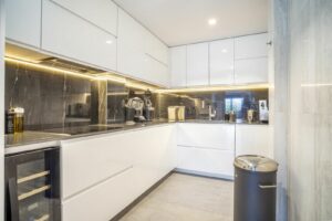 One of the standout features is the rooftop terrace, accessed via a staircase from the main level. Measuring 70m², it includes a fully fitted outdoor kitchen and lounge area, an ideal setting for gatherings, summer dining, or simply unwinding while taking in sweeping views of the golf greens and natural surroundings. This rooftop space enhances the lifestyle appeal of the home, adding a level of exclusivity and comfort rarely matched.