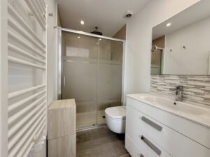 • Two modern bathrooms with walk-in showers and premium finishes