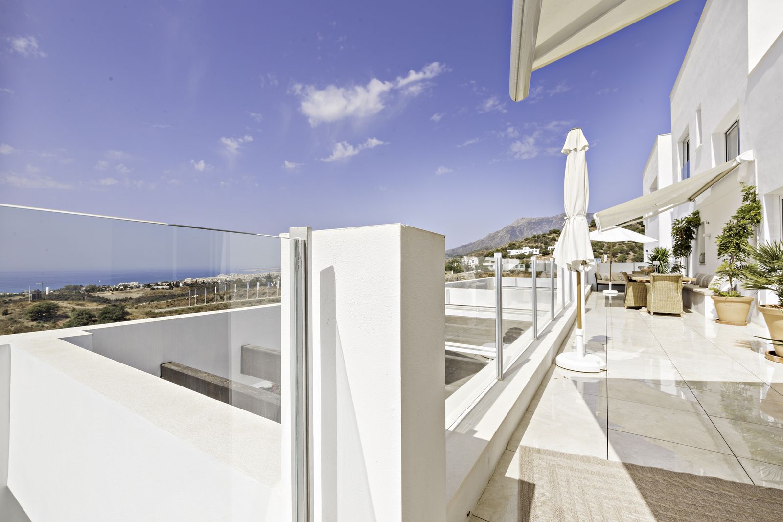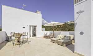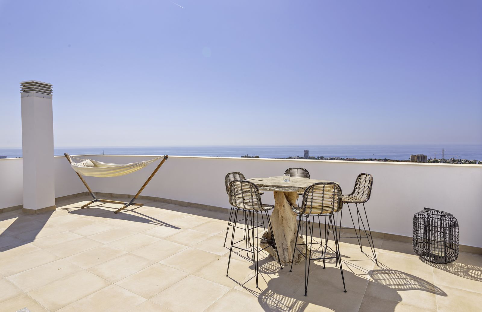 STUNNING duplex in a beautiful, newly built modern complex in Altos de Marbella, just an 8-minute drive from alluring beaches and the Marbella arch. This glamorous south-oriented home boasts magnificent views, top-of-the-line qualities, and a feel of luxury & comfort all around. The house has been upgraded with high-end finishes and is ready to move in, key in hand.