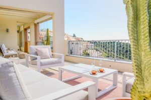 The interior is bright, modern and designed for comfort. Both bedrooms are positioned to maximize the sea views — imagine waking up with the Mediterranean views directly in front of you. Each bedroom has its own en-suite bathroom, built-in wardrobes, electric shutters and direct access to the expansive terrace.