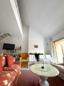 This two-bedroom, two-bathroom apartment, boasting generous proportions and an excellent layout, provides the ideal foundation for a full renovation to enhance its value and transform it into a bespoke luxury residence. One of the bedrooms is located on the upper level, featuring an open-plan feel and a charming sloped ceiling, adding character and architectural interest to the home.