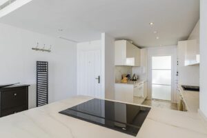 This amazing south-west facing Penthouse is very private and has been furnished with high quality materials throughout. The living / dining area has access to a big terrace with views across the whole of Nueva Andalucia and with panoramic views over the ocean and Gibraltar. On a bright day you can view the African coast line.