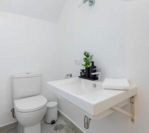 Spanning 95 m² built (90 m² usable) with an inviting east-facing orientation for morning sunshine, this second-floor apartment (no lift) has been meticulously maintained for private use only – never rented or Airbnbbed – and is sold fully furnished with contemporary style. The ground level welcomes you with an entrance hall, guest cloakroom, open-plan kitchen equipped with modern appliances flowing into a cosy living-dining area, and direct access to a private terrace for al fresco mornings. Upstairs, two generous bedrooms with fitted wardrobes share a large family bathroom and open onto another terrace overlooking the lush surroundings – ideal for relaxation or evening sundowners.