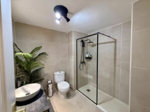 This fully renovated penthouse stands out for its brightness, elegance, and comfort. It features a spacious living-dining room with direct access to a 15 m² terrace, ideal for enjoying the Mediterranean climate year-round. The separate kitchen is equipped with high-end appliances and designed to maximize the use of space.