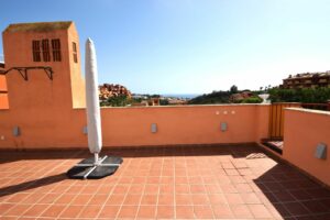 This is an immaculately presented penthouse in La Reserva de Marbella just minutes from Cabopino, Elviria and their lovely beaches. This penthouse has a large west facing terrace which offers great winter sun and sea views and upstairs is a huge roof terrace with its own enclosed room ideal for storage, gym or shaded lounge area. There is a large communal pool as well as garage space and storage room included in the price.