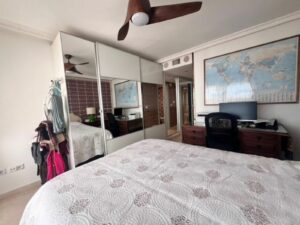 Sustainable living is prioritized with solar panels providing hot water, adding both energy efficiency and eco-consciousness to the property. The apartment also boasts new air conditioning, ensuring comfort year-round.