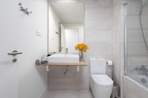 The fully equipped modern kitchen offers clean lines and high-quality finishes. The apartment includes two comfortable bedrooms, two bathrooms, a utility room, and is sold completely furnished, allowing for immediate use or rental without any additional investment.