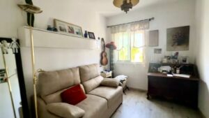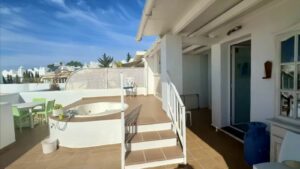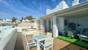 Inside, the property offers an open-plan layout with a living room, dining area, and fully equipped kitchen, along with two comfortable bedrooms, a full bathroom, and an additional guest toilet. The spacious rooftop terrace is accessed from the upper floor, ideal for entertaining or unwinding.