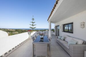 Located in the prestigious Coto Real complex on Marbella’s Golden Mile, this elegant 2-bedroom, 2-bathroom apartment offers stunning open sea views and a privileged hillside setting close to Puente Romano, fine dining, designer boutiques, and the beach.