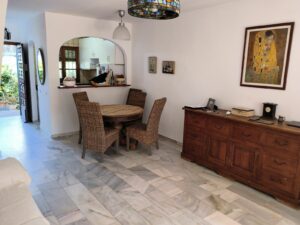 The home is spread over two floors and features 2 bedrooms, 1 full bathroom, and a spacious terrace with a built-in BBQ, ideal for outdoor dining and entertaining. The community offers beautiful landscaped gardens, a swimming pool, and a peaceful atmosphere, just steps away from local schools and with easy access to the main road.