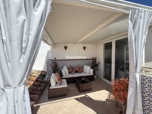 Upstairs, a generous roof terrace with pergola and additional storage room offers the ideal setting for outdoor dining, sunbathing, or enjoying the warm Costa del Sol climate year-round.