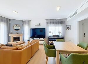 The home boasts over 200 m² of built area, distributed across three floors plus a solarium terrace, and has been recently renovated, combining privacy, enclosed gardens, and modern amenities.