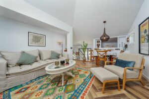 Upon arrival, you are welcomed through a stunningly staged courtyard, centered around a majestic olive tree, creating a serene and inviting atmosphere. This gorgeous outdoor space is designed for alfresco living, featuring a BBQ and outdoor dining area, a dedicated prep station, a charming fountain, and exquisite décor including lush pot plants, authentic Andalusian wall-mounted plates, and unique handcrafted pieces.