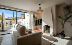 This property comprises: open-plan living area with fireplace and fully fitted and equipped kitchen; access to a large open terrace with dining and BBQ areas. Upstairs: two exquisite double bedrooms, both of them en-suite and with private balconies. The property features underfloor heating downstairs and in the bathrooms upstairs.