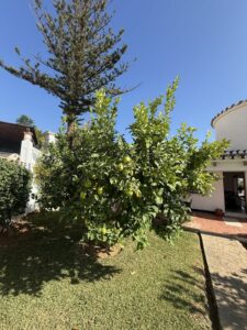 To the outside you will find lovely maintained gardens with mature lemon trees, around the rear of the property is the very private pool and solarium area where you can relax and unwind in total privacy.