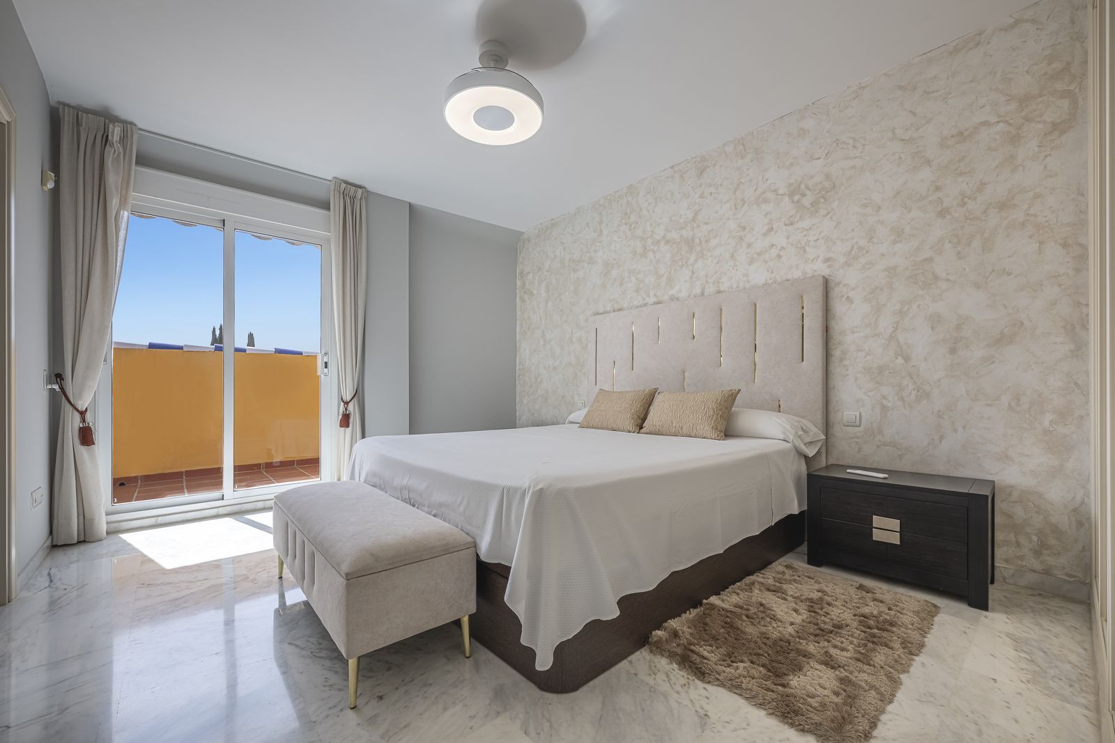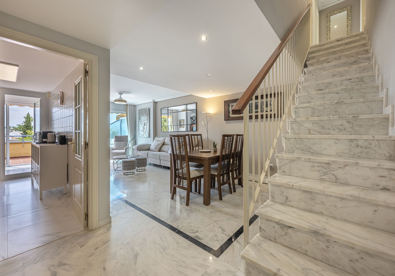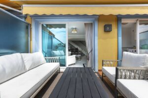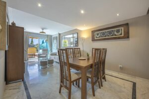 Exclusive opportunity! A stunning duplex penthouse with sea views, just a few steps from the beach in the prestigious Bahia de Marbella. Discover the charm of this property in one of the most privileged areas of Marbella. This property is distributed over two floors and offers an exceptional design and luxury amenities! On the main floor, you are welcomed by a spacious living-dining room that opens onto a sunny terrace overlooking the sea and the gardens, a fully fitted independent kitchen with modern appliances together with a laundry room and a guest toilet, complete this level. On the first floor is the master bedroom with a renovated en-suite bathroom and a private terrace offering stunning sea views, a perfect corner to enjoy the tranquility and beauty of the surroundings. In addition, two spacious bedrooms with fitted wardrobes share another large terrace with open sea and mountain views, along with a modern bathroom equipped with a shower. The property is equipped with hot/cold air conditioning to guarantee comfort at any time of the year. With an unbeatable location in an exclusive urbanisation with communal swimming pools and well maintained gardens. Walking distance to one of the best beaches in Marbella! Total built area: 140,28m2 Year of construction: 2002 Community fees: 220€/ month IBI: 1.200€.