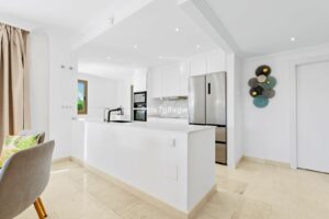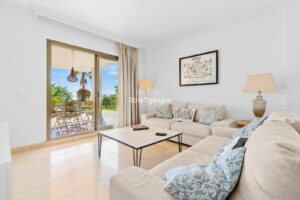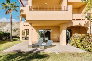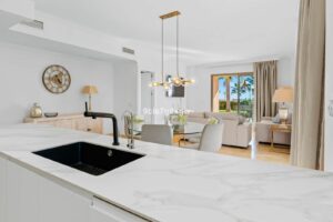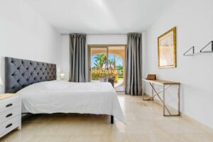 Superb and spacious 127m² ground-floor apartment, ideally located at the highest point of the development. It features two terraces totaling 78m², partially covered (perfect for year-round enjoyment), with direct access to the 140m² communal garden and offering beautiful views of the sea and Gibraltar. Being a corner unit, it enjoys optimal natural light thanks to its three façades and its south/southwest orientation.