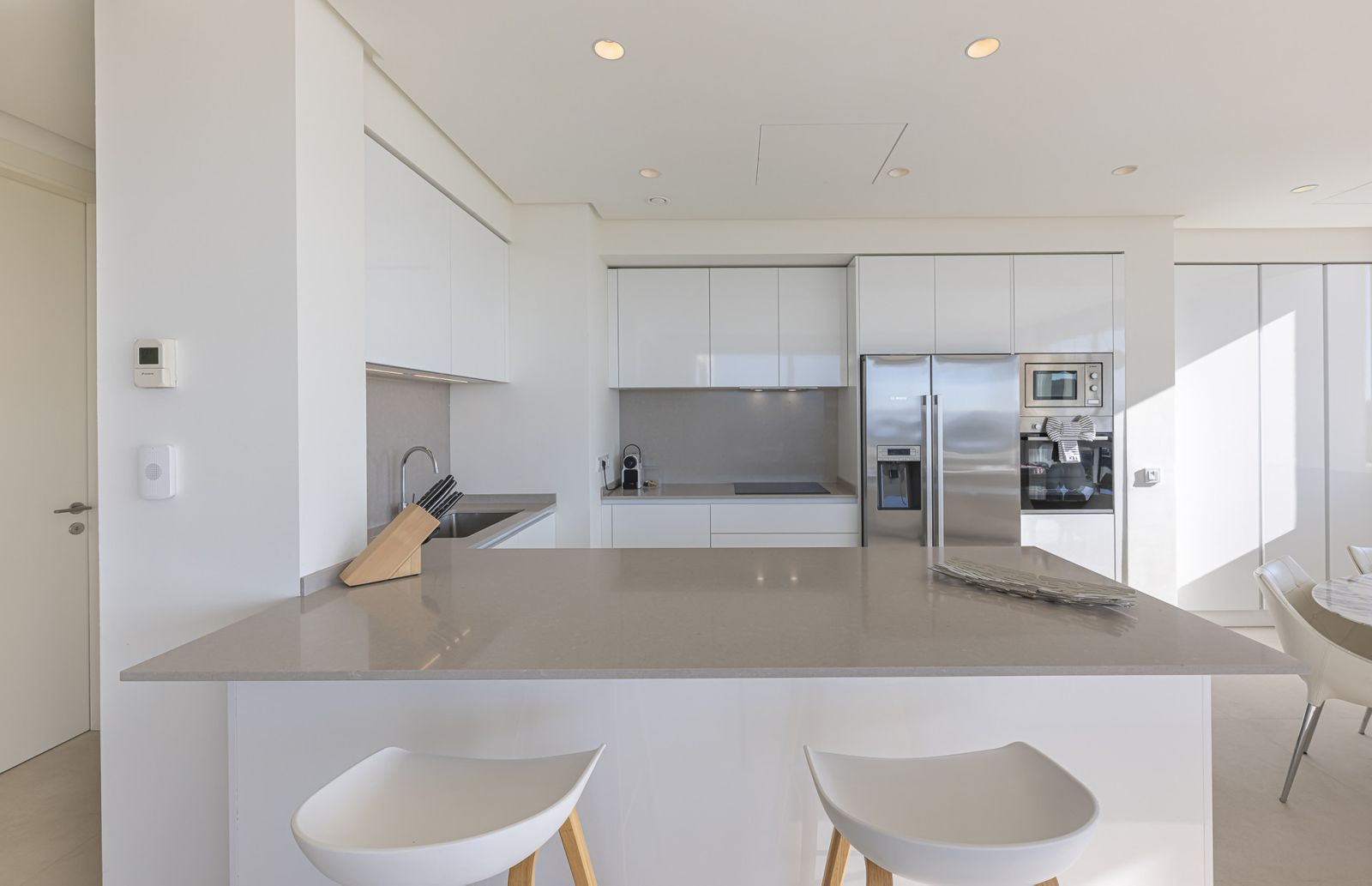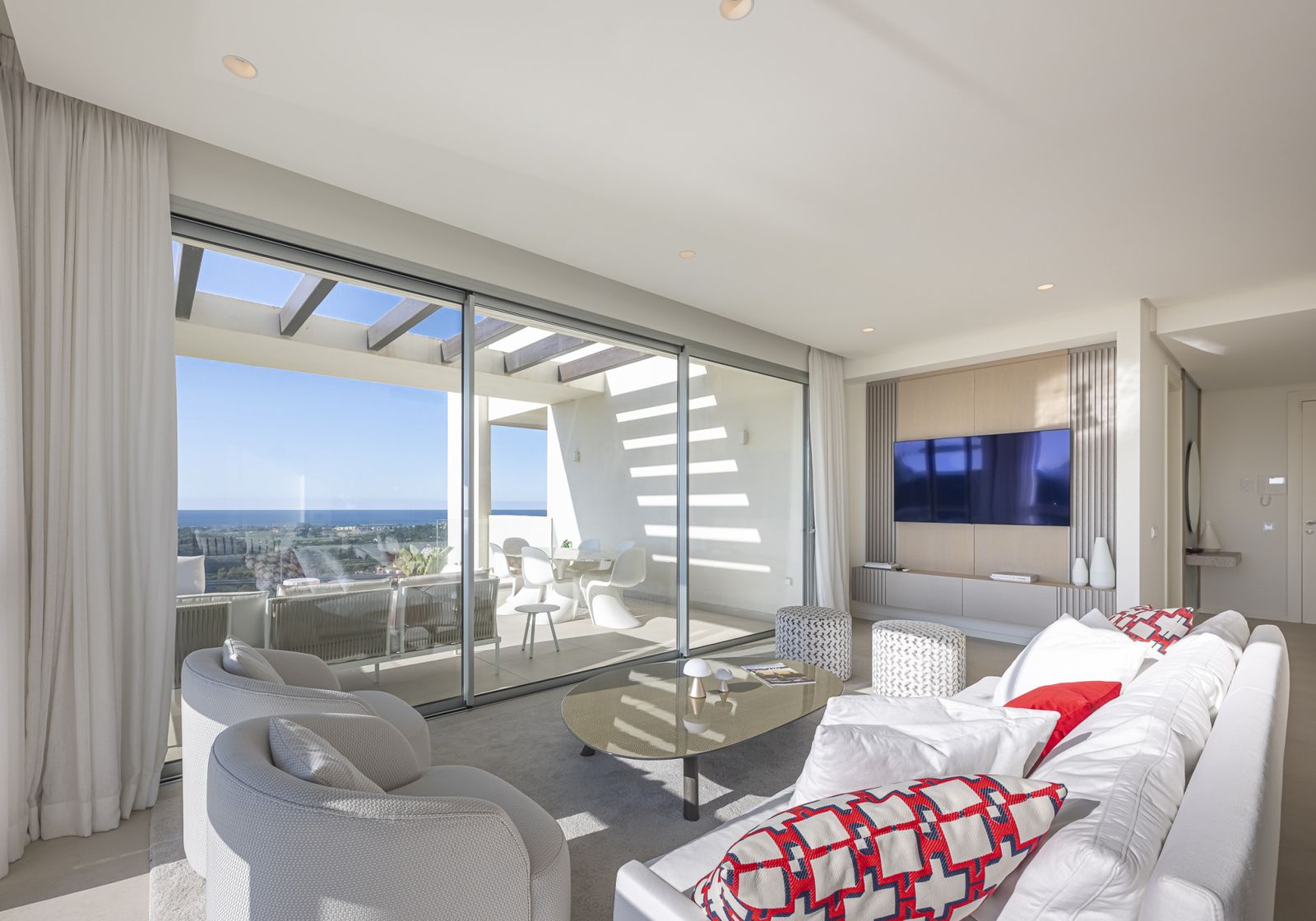 With three en-suite bedrooms, all with king-size beds and private bathrooms, this property guarantees ultimate relaxation. The master suite opens onto a private, intimate terrace with uninterrupted sea views, perfect for enjoying stunning sunsets.