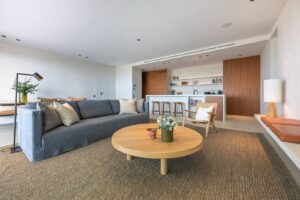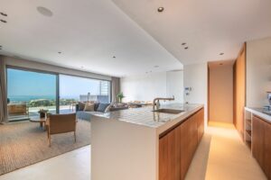 It consists of three bedrooms, the main one being en-suite, its living room is spacious and in it, we find a designer kitchen and open concept that visually communicates us with the magnificent outdoor environment through a large terrace of 61 square meters.