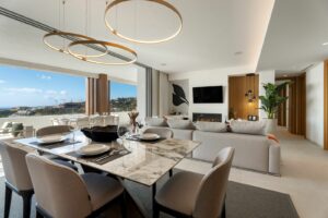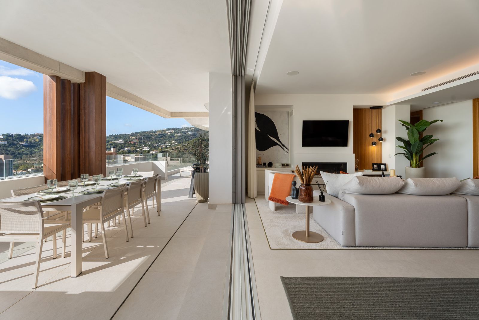 This first-floor residence enjoys breathtaking panoramic views across the Mediterranean Sea, Gibraltar and the Atlas Mountains, visible from the spacious private terrace and principal living areas. The apartment is located within a boutique block of only five residences and is a middle-end unit with just one neighbouring apartment, offering enhanced privacy and tranquillity.