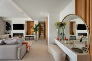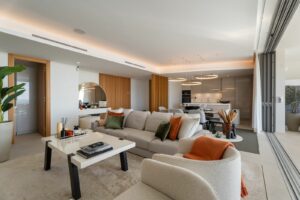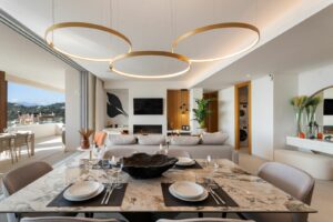Accommodation includes three spacious bedrooms, led by a luxurious master suite with direct terrace access and west-facing views towards La Zagaleta. All bedrooms are fitted with individual safes, and the bathrooms are beautifully finished to a high standard.