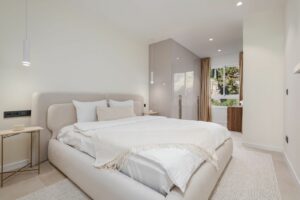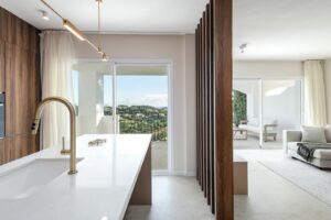 Meticulously renovated to the highest Scandinavian standards, this home features three generously sized bedrooms and two beautifully designed bathrooms. The interiors are flooded with natural light and decorated in calming, neutral tones that create an inviting atmosphere. The pièce de résistance is the spacious terrace, which comes complete with a cozy outdoor bathtub. From here, you can soak in panoramic views of the mountains, the shimmering sea, and the lush fairways of the surrounding golf course – the perfect setting for relaxation or entertaining.