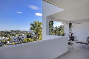 Positioned within the elevated residential enclave of Altos de La Quinta in Benahavís, this three-bedroom apartment combines generous proportions with open views across sea, mountain, and landscaped surroundings. Originally constructed in January 2005 and scheduled for renovation in 2025, the property offers an updated interpretation of contemporary Mediterranean living within a secure gated community. Its south-east orientation captures morning light while maintaining a calm and temperate interior atmosphere throughout the day.