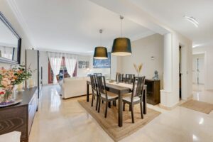 The location is exceptionally convenient: right next to a Mercadona supermarket, Atalaya International School, and the new commercial centre. It’s only a 10-minute drive to Puerto Banús and just 7 minutes to the charming village of Benahavís.