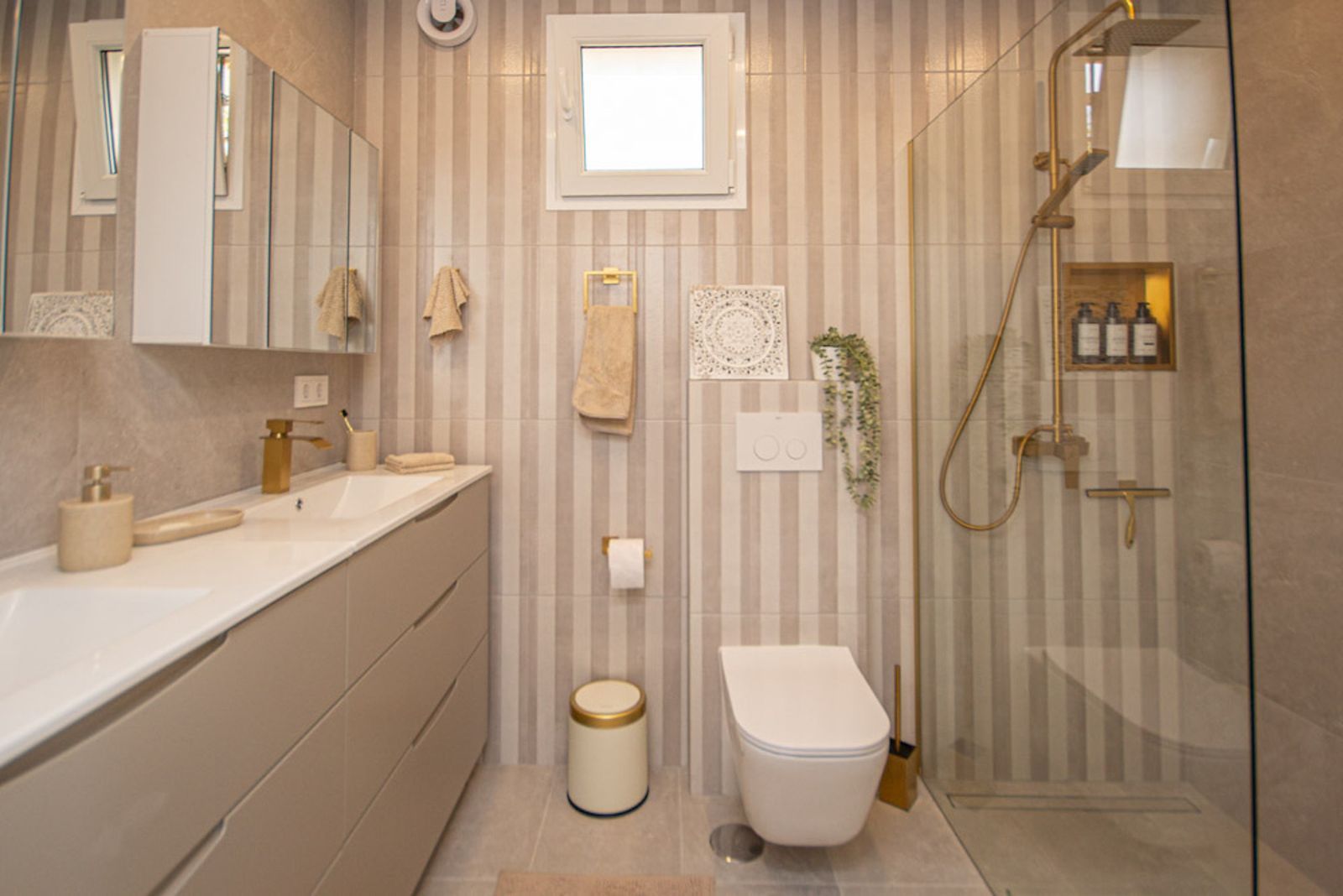 This beautiful 3-bedroom, 2-bathroom apartment has been completely renovated this year to a very high standard. It features a custom-made kitchen by a German carpenter, equipped with Bosch appliances, new air conditioning units, stylish fitted wardrobes, and two elegant bathrooms with walk-in showers.