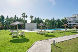 This exquisite three-bedroom garden apartment presents a rare opportunity to acquire a turnkey luxury residence in the sought-after area of Cancelada. Meticulously upgraded by the current owner, the property combines contemporary design, premium materials, and effortless indoor–outdoor living.