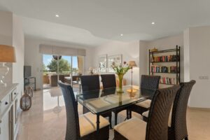 The main terrace is perfect for outdoor dining, relaxing with family and friends, or enjoying the Mediterranean climate all year round. Large windows create a seamless connection between indoor and outdoor living, enhancing the feeling of space and comfort. From the terrace, you can enjoy beautiful views of the lake, golf course, and sea.
