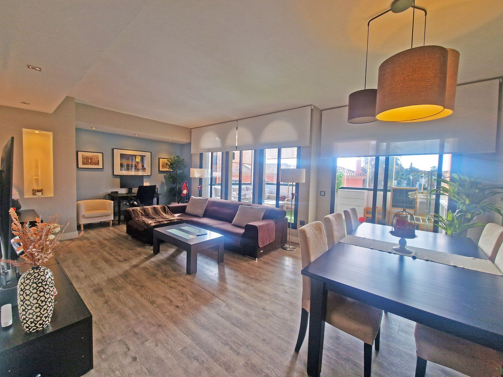 This elegant, fully renovated three-bedroom corner apartment is located within a quiet, secure gated urbanization in the highly sought-after area of Elviria. Designed to combine comfort, functionality, and natural light, the property is ideal both as a permanent residence and as a high-quality holiday home.