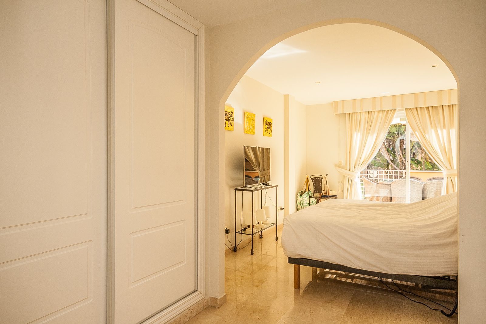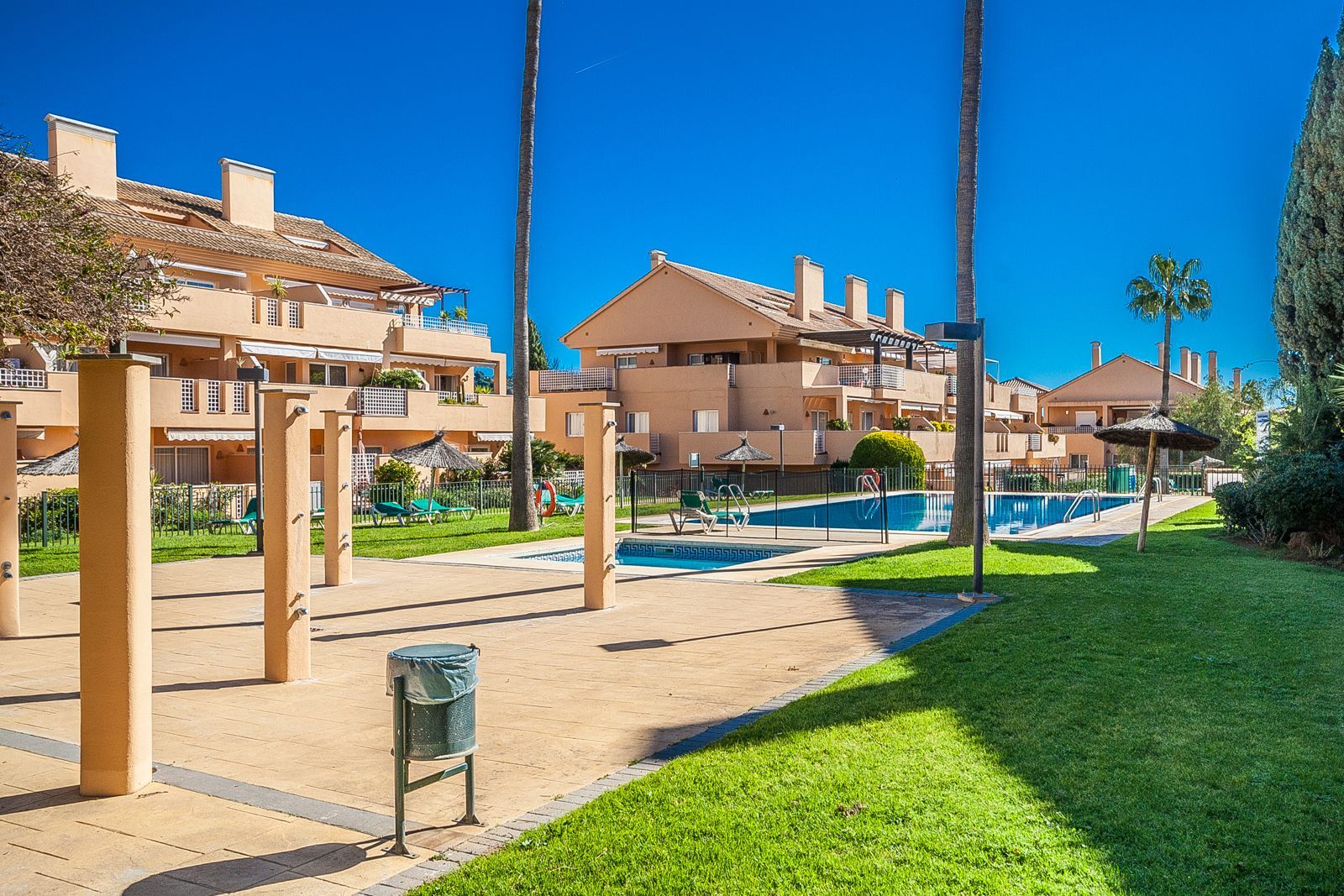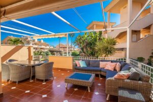 Discover this exceptional ground floor apartment located in the sought-after area of Elviria, perfectly positioned within a secure and well-maintained urbanisation. Offering 131 m² of built space plus a generous 35 m² private terrace, this property combines comfort, style, and an unbeatable location. The apartment features three spacious bedrooms and two modern bathrooms, including a master bedroom with an en-suite bathroom. Designed for comfortable living, it boasts marble flooring, fitted wardrobes, double glazing, and excellent overall condition throughout. The bright south-east orientation allows for plenty of natural light, while the private terrace offers lovely views over the communal gardens and pool — an ideal space for relaxing or entertaining. The fully equipped home also includes air conditioning with hot and cold settings, a utility room, storage room, and convenient access to underground private parking and a garage. Located close to golf courses, shops, the beach, and schools, and with easy access to transport links, this property is perfectly suited as a permanent residence, holiday home, or investment opportunity. Set within a gated complex with 24-hour security and a beautiful communal pool area, this apartment offers both peace of mind and a high-quality Mediterranean lifestyle.
