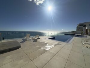 * **Infinity saltwater pool** with breathtaking Mediterranean views