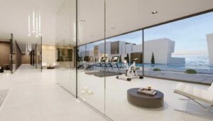 Modern three-bedroom apartment with exceptional terrace, gym, and pool area.