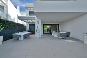 Elegant 3-Bedroom Ground Floor Apartment | Las Terrazas de AtalayaExperience contemporary Mediterranean living in this stunning 3-bedroom ground floor apartment, perfectly situated in the prestigious Las Terrazas de Atalaya complex — just steps from Atalaya Golf Course and the main road to Benahavís.Built in 2018, this modern home seamlessly combines sleek design, comfort, and functionality. The open-plan living and dining area flows effortlessly into a fully equipped, stylish kitchen, while sliding glass doors open onto a spacious covered terrace of 63 m², ideal for year-round indoor/outdoor living.From the terrace, step into a private garden of 74 m² that leads directly to beautifully landscaped communal areas and the swimming pool — perfect for relaxation or entertaining guests.The master suite features direct terrace access, fitted wardrobes, and a luxurious en-suite bathroom. Two additional double bedrooms, a contemporary family bathroom, and a separate utility room complete the layout, offering ample space for family or visitors.Residents of Las Terrazas de Atalaya enjoy exclusive amenities, including a paddle tennis court, outdoor gym, and tranquil green spaces. The property also comes with a private underground parking space and a storage unit for added convenience. Prime Location:•Adjacent to Atalaya Golf & Country Club•Close to Benahavís, Puerto Banús, and Estepona•A short drive to beaches, restaurants, and international schoolsA perfect combination of modern elegance, lifestyle, and leisure — ideal as a permanent home or a Costa del Sol investment.Contact us today for full details or to arrange a private viewing.The abbreviated information document is available to you. Expenses: Taxes (ITP or VAT+AJD) + Notarial and registration expenses.NG1.