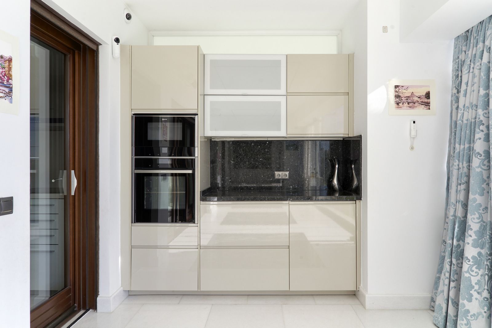 The property spans an impressive 197m², with 117m² dedicated to its meticulously designed interior and private garden. The apartment features three spacious bedrooms and three modern bathrooms, all finished to an excellent standard.